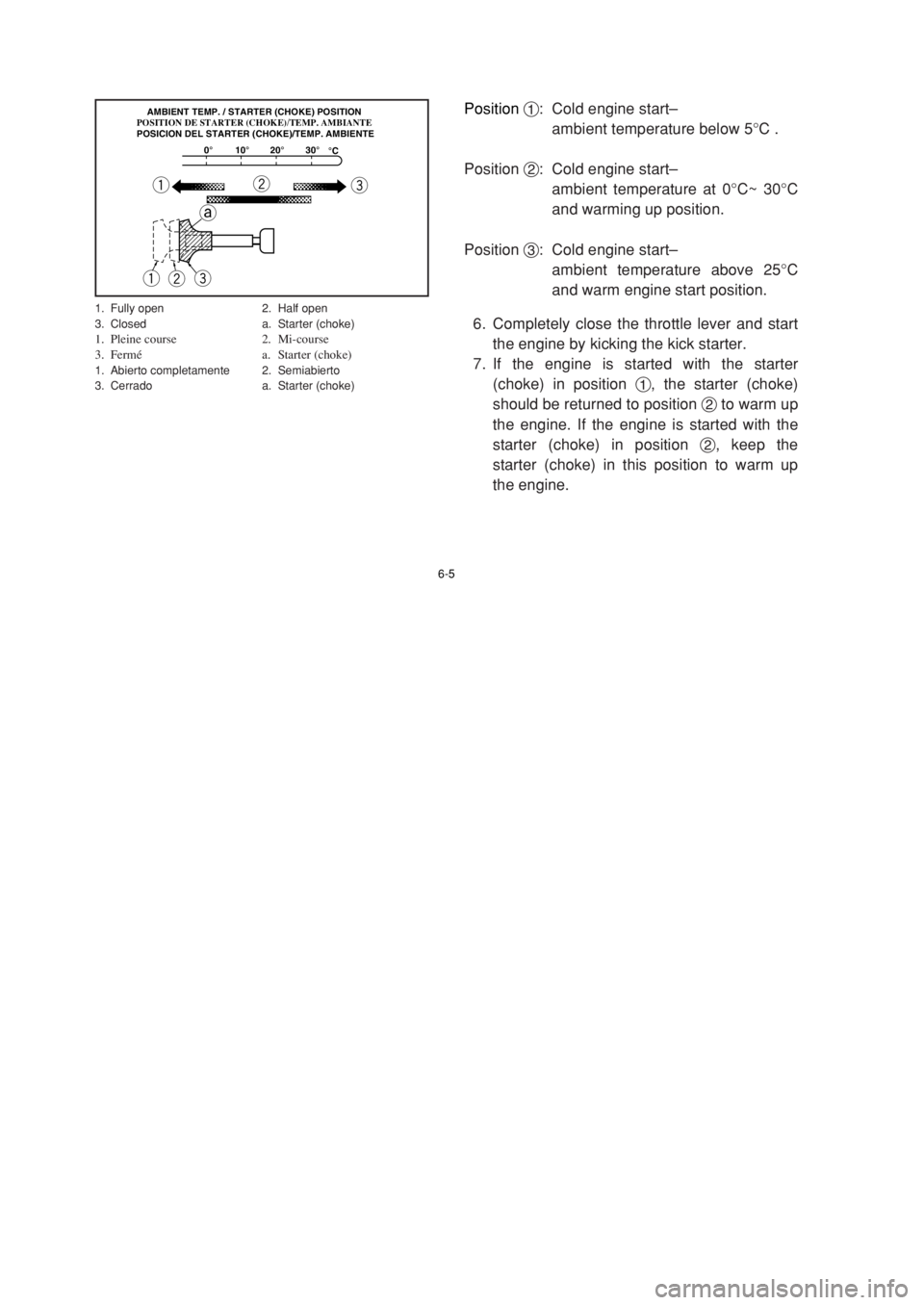 5. Use the starter (choke) in reference to the