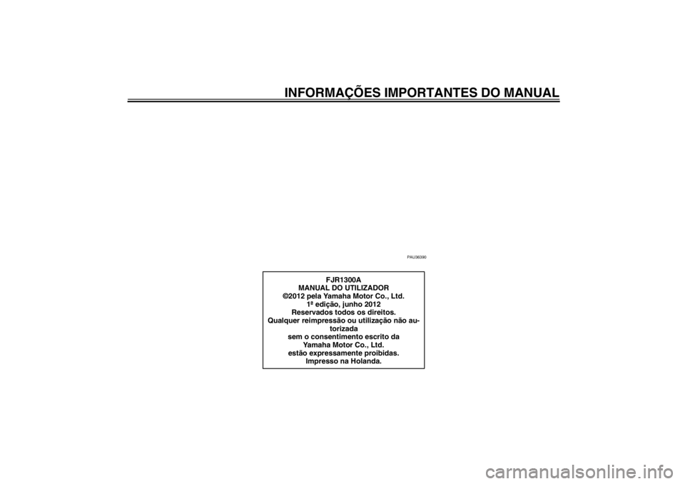 Por favor leia atentamente este manual para que possa desfrutar de todas as vantagens da sua FJR1300A. O Manual do Utilizador n ão