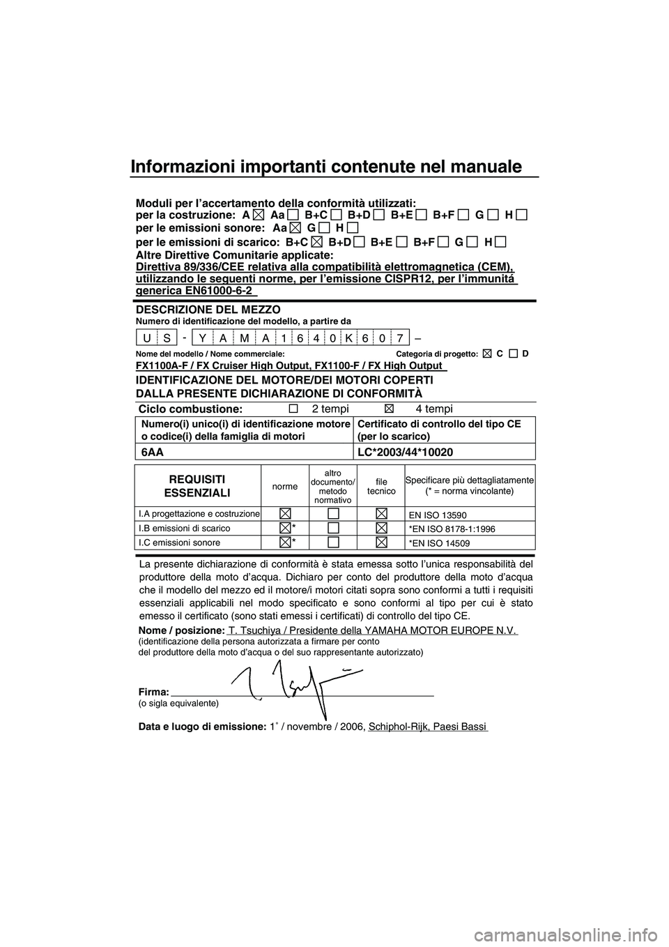 Nome / posizione:T. Tsuchiya / Presidente della YAMAHA MOTOR EUROPE N.V.(identificazione della persona autorizzata a firmare per conto