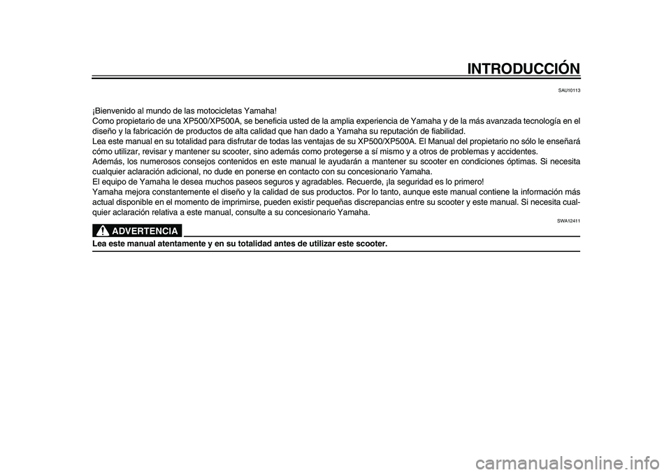 Como propietario de una XP500/XP500A, se beneficia usted de la amplia experiencia de Yamaha y de la más avanzada tecnolog