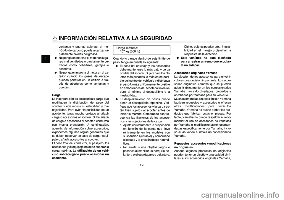 YAMAHA VITY 125 2010  Manuale de Empleo (in Spanish) INFORMACIÓN RELATIVA A LA SEGURIDAD