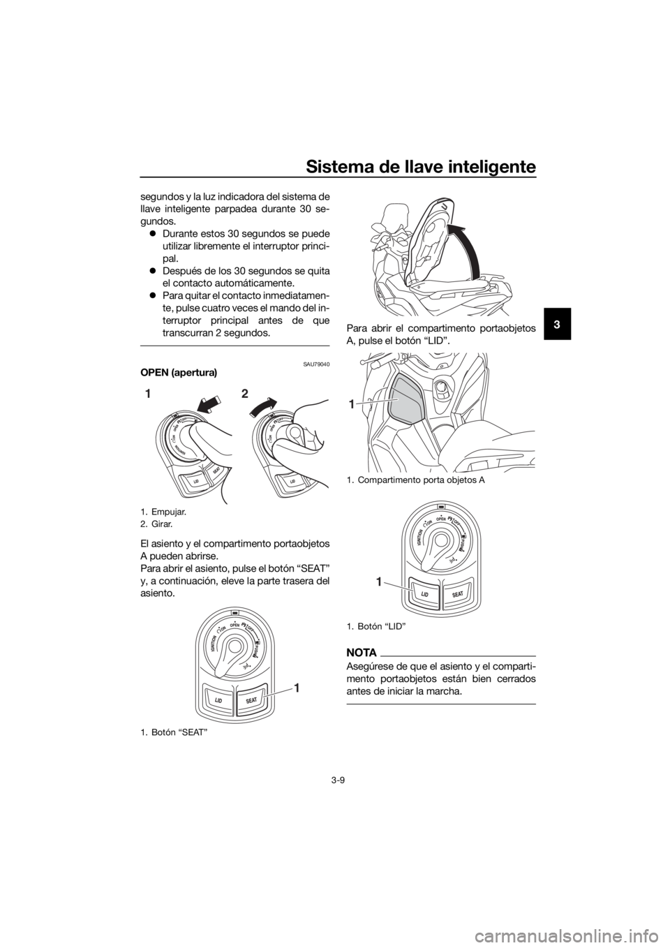 1. Con la llave inteligente activada y den- tro del radio de alcance, gire el inte-