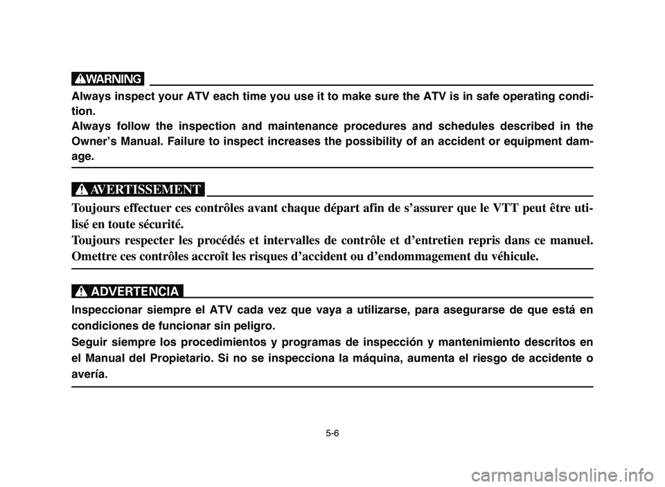Inspeccionar siempre el ATV cada vez que vaya a utilizarse, para asegurarse de que está en