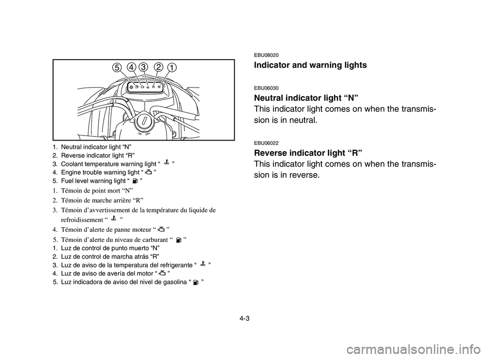 Indicator and warning lights ................ 4-3
