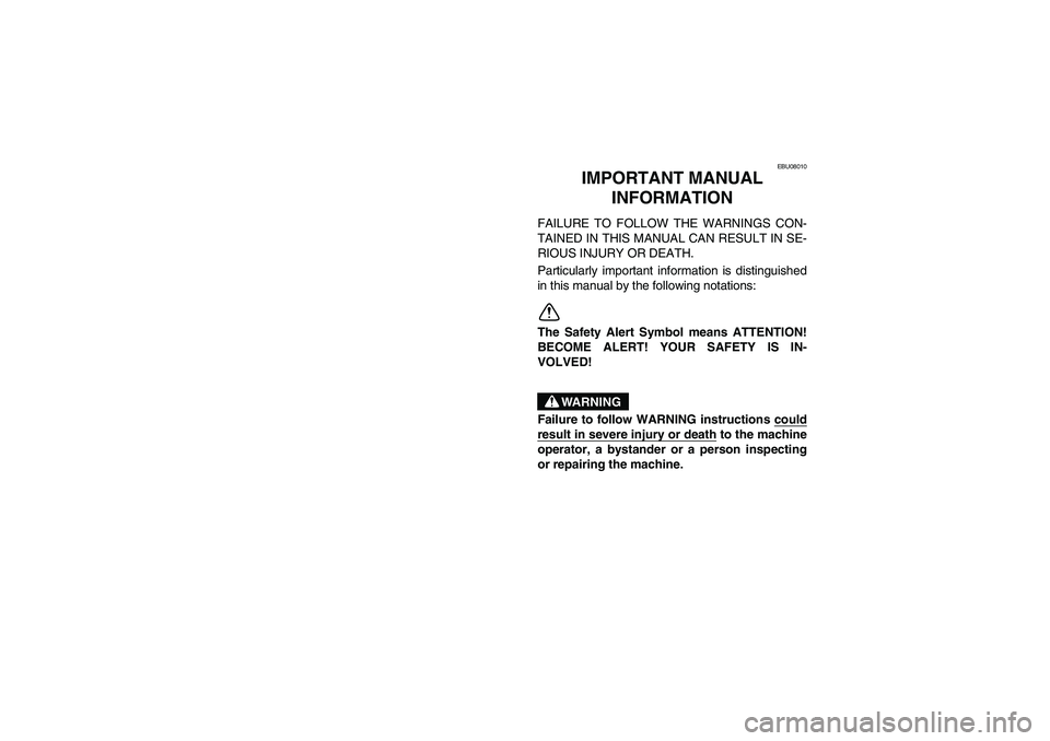 YAMAHA YFZ450 2005  Manuale de Empleo (in Spanish) AN IMPORTANT SAFETY MESSAGE: