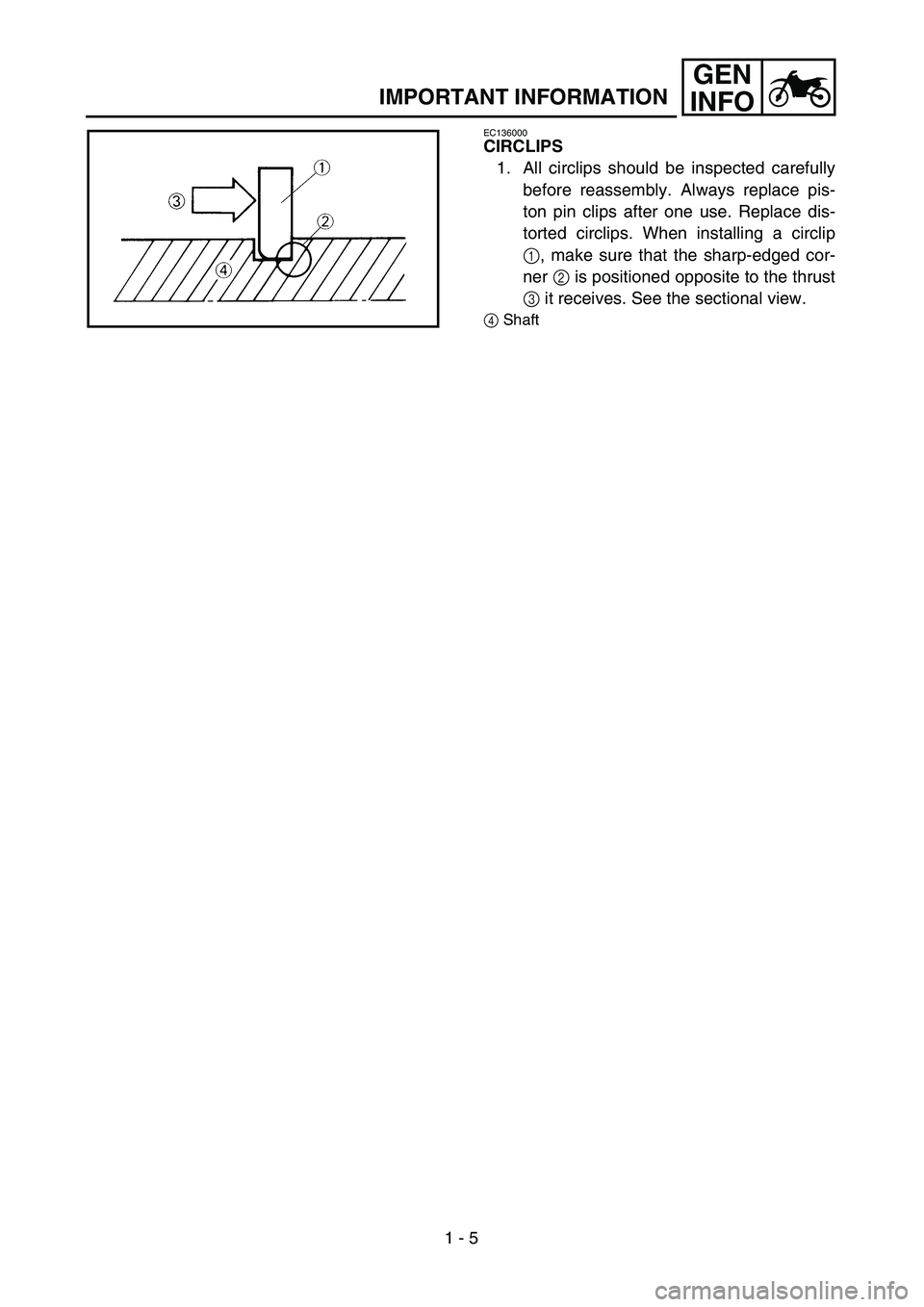 YAMAHA YZ450F 2004 Owners Guide 1 - 5